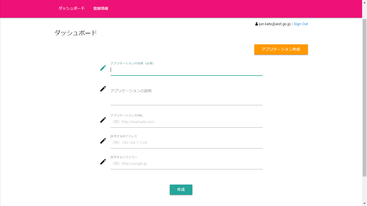 | アプリケーションの名前 | この項目のみ入力必須です。 |